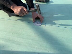 下地に絶縁シートを敷き、ディスク板を取り付け、その上からシートをかぶせていきます。