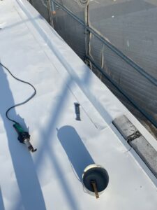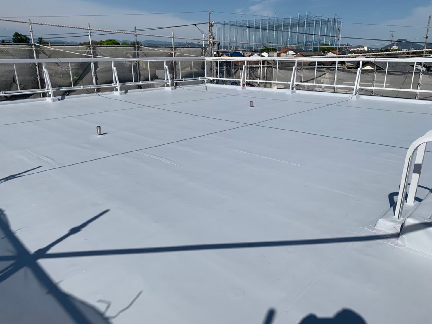 施工後はシートのつなぎ目も美しく仕上がり、雨水の流れもスムーズに。